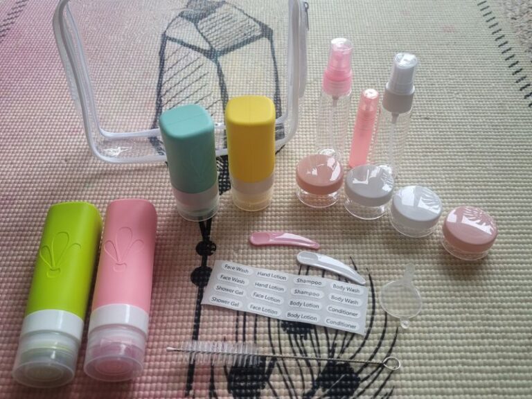 Instead of full bottles, I use small refillable containers and only bring what I’ll realistically use.